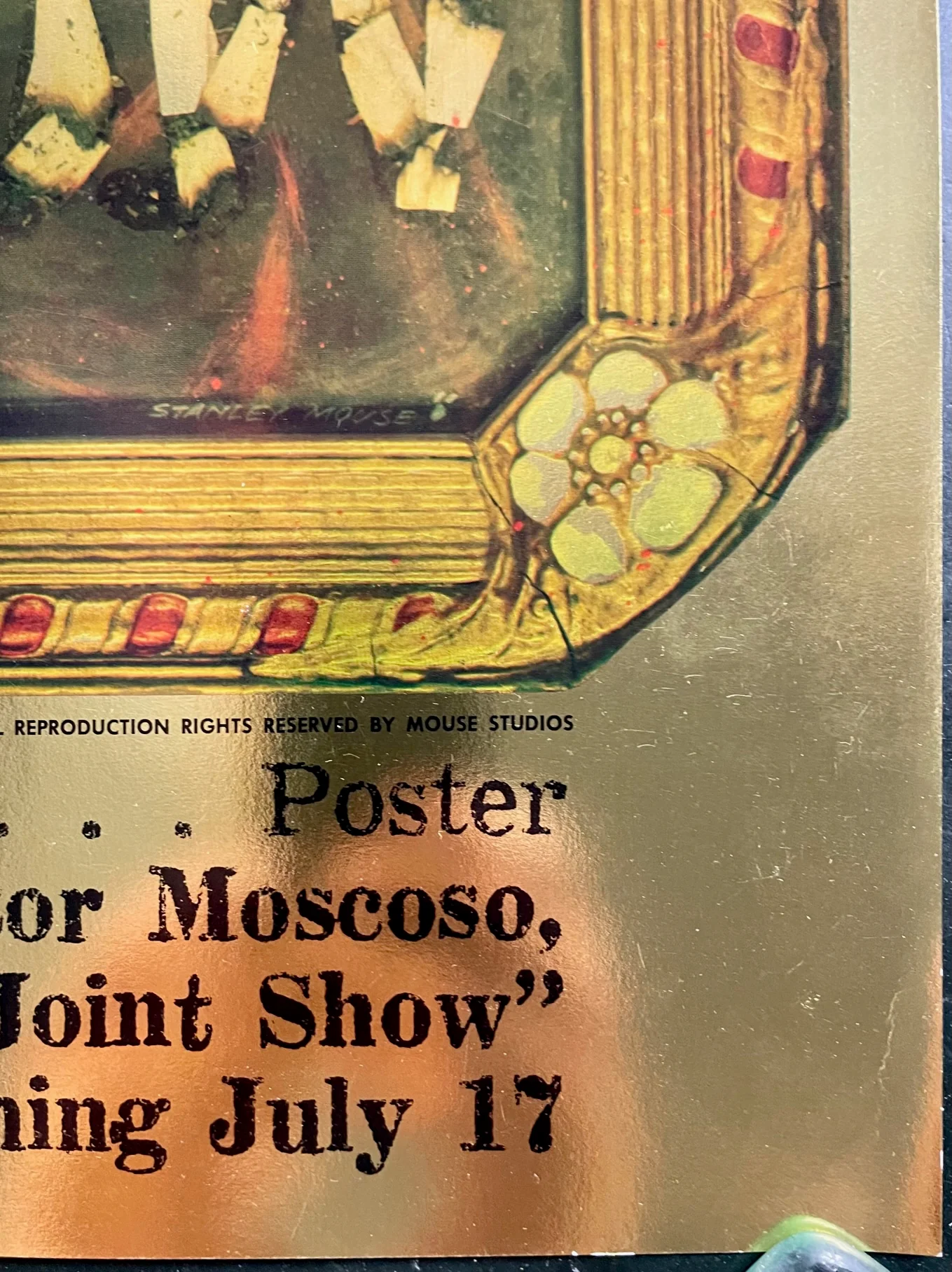 Ā The Joint Show was the first of its kind, it opened on July 17, 1967 at the Moore Gallery in San Francisco,. It featured theĀ ābig fiveā of the prominent psychedelic poster artists, all displayed at a single show. This is Stanley Mouse's poster for the show.